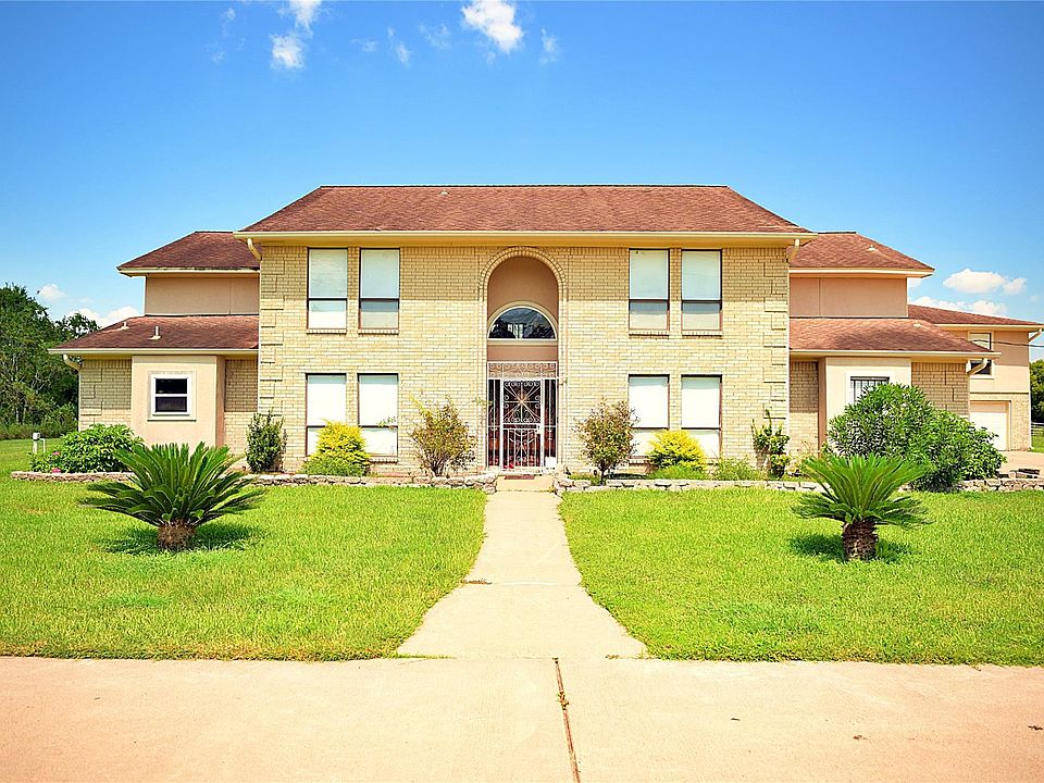 8033 McHard Rd, Pearland, TX 77581 is a multi-structure property on approximately 9.5 acres. The main house offers 4–5 bedrooms, 3.5 bathrooms, multiple living areas with a bar, a kitchen with island and double ovens, a breakfast area, an office that can serve as a bedroom, an upstairs game room with deck access, a laundry room with window, and a balcony over a covered rear patio. Extra room on the 3rd, can be used for storage. A detached two-car garage includes a separate apartment with 2 bedrooms and 1 bathroom over the garage. Private driveway and fencing on site. An agriculture exemption applies to the majority of the land. Location provides access to Downtown Houston, the Texas Medical Center, Pearland Town Center, and area schools.