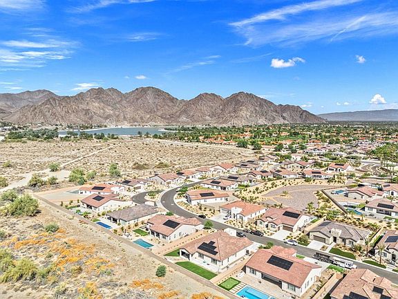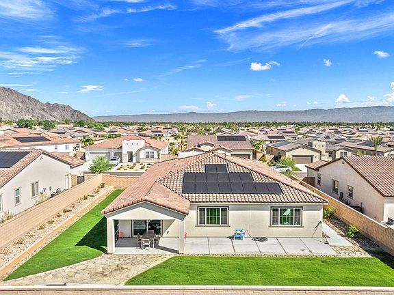 La Quinta at its finest!! Don't miss on this stunning south facing residence in the heart of the Cantera at Coral Mountain community. A professionally landscaped backyard affords the feeling of intimacy to the mountains. A custom built-in barbeque ensures low-desert sunsets are even more pleasurable. This two-year-old, professional owned residence exemplifies pride of ownership. A beautiful home featuring 3,006 square fee t of warm luxurious living space. The bright and open kitchen features an expansive island, custom buffet comprised of floating cabinets and shelving, professional sized refrigerator and an entertainment wall along with a custom speaker system completes the open living space. An extended driveway, additional storage and workout area compliment the garage space.
