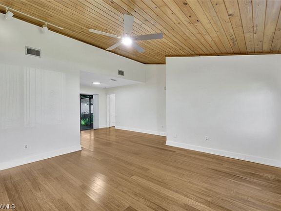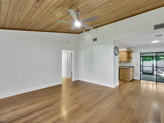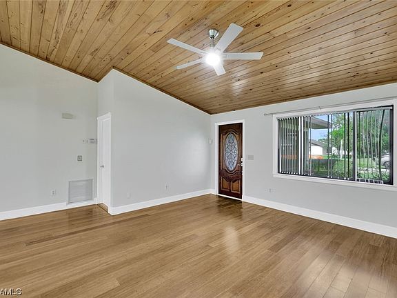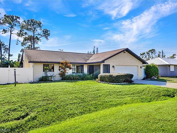 If an exceptional home is what you're after, you've found it! This quaint home not only catches the eye but also comes with enhancements that are hard to do justice in a simple list. With three bedrooms and two baths, it exudes a rustic charm featuring genuine hardwood floors, baseboards, a captivating wood ceiling in the living room, and trim around the doorways reminiscent of a woodland cabin. The bathrooms have undergone upgrades with decorative tile and travertine. A notable feature of this home is its inviting pool creating the perfect setting for gatherings and entertaining guests. A few of the improvements: paint inside and out, new faucets, new ceiling fans, lighting, etc. Conveniently situated, it offers easy access to all that Florida has to offer—from pristine beaches to the shopping havens of Miramar Outlets, Coconut Point, and the Gulfcoast Towncenter. Local dining and shopping options are just a stone's throw away, and the property's close connection to Interstate 75 adds an extra layer of convenience. This residence captures a unique blend of charm, character, and practicality—an exceptional combination that truly sets it apart. Seller Financing Available.