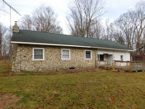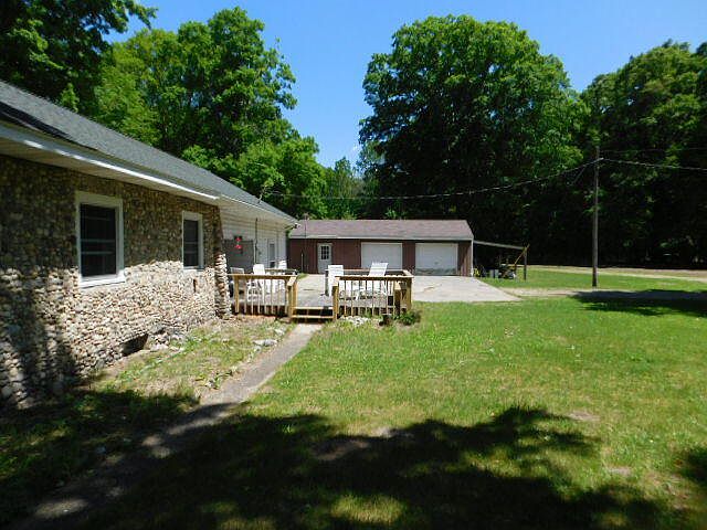 3 bedroom, 1.5 bath, older stone home with 2 stall detached garage. Screened in patio plus front porch and deck. Beautiful mature trees and front yard. 3 miles from Hesperia. Surrounded on 2 sides by State Land with public access to White River from State property. Being sold as is. 2.8 acres M/L, new well, 10 yr old furnace and roof.
