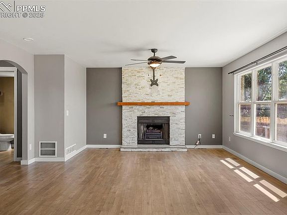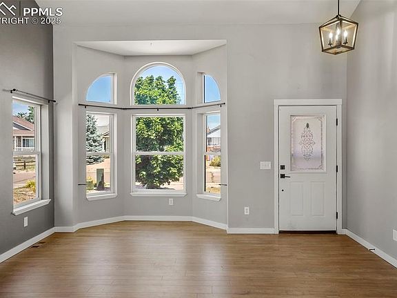 Welcome to this spacious Two-Story Home in the Desirable Woodmen Hills Community! In Close Proximity to Woodmen Hills Elementary School and Falcon High School. Easy Access to Both Woodmen Road and Highway 24 as Well as Parks, Community Rec Center, Shopping and Dining! Once inside you are greeted by a Formal Living Room and Adjacent Kitchen Open to Dining and Family Areas newly remodeled. Large Windows and Vaulted Ceilings bring in an Abundance of Natural Lighting, and LVP flooring throughout main level. Spacious Kitchen with updated appliances and of course a Pantry Storage. The Family Room, Which Opens to the Kitchen, Features a Wood Burning Fireplace & Walk Out to Back Patio. Half Bath + Laundry Room Are Conveniently Located on the Main Floor As Well. Upstairs there are three Bedrooms and a Loft Area. the space works perfectly for an at home office, workout area or even a 6th bedroom! The Private Master Suite Includes an Attached Full Bath as well as a Walk-in Closet. The Fully Finished Basement has Large Windows, Recessed Lighting, and a Large Family/Rec Room Providing Another Spacious Entertaining Space. The basement also offers 2 more Bedrooms as well as another bathroom. There is Room For All In This Well Maintained 5 Bedroom, 4 Bathroom Home. Updated appliances, custom rails and a newer furnace are only some of the details that make this home a winner!