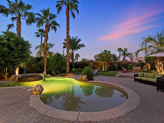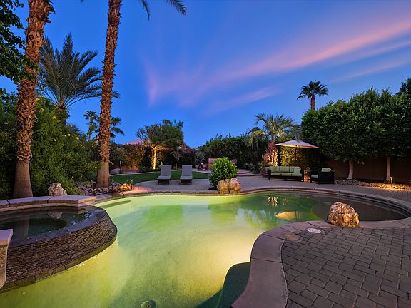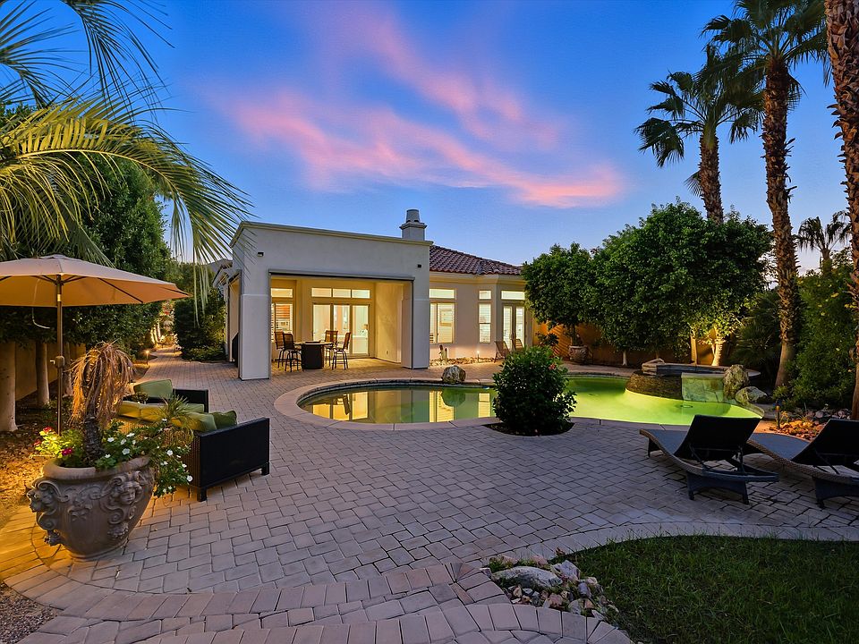 Discover the perfect Mountain View CC rental, blending vibrant social amenities with premier golf access! Entertain in style in the expansive, beautifully landscaped backyard, featuring a private pool, raised spa, covered paver patio, built-in BBQ, and a fire dining table. The charming front paver courtyard, shaded by a covered pergola, offers additional seating for relaxation. Inside this turnkey furnished 2975 Sq Ft 3BR/3.5BA home, you'll love the well stocked gourmet granite kitchen which boasts an island breakfast bar, stainless steel appliances, a gas cooktop, a pantry, and a cozy dining table for four. The beautifully and comfortably furnished great room, complete with a fireplace, smart TV, and adjacent bar, seamlessly opens to the backyard pool area. Host elegant dinners in the formal dining room, perfect for six. Retreat to the luxurious primary suite with a king bed, smart TV, and French doors leading to the backyard oasis. Its ensuite bath features dual vanities, a dressing table, a separate tub and shower, and a spacious walk-in closet with oodles of built in storage. The generously sized second bedroom suite offers a queen bed, smart TV, desk, large closet, and a bath with dual vanities and a shower-over-tub. The private casita, accessible from the courtyard, includes a king bed and a bath with dual vanities and a walk-in shower. A convenient laundry room with an extra refrigerator, a powder room, and a two-car attached garage with golf cart space complete this exceptional home. Owner pays monthly HOA, weekly pool/gardener service, water, cable, internet and gas/electric with $400 month cap for combined gas/electric. For a one-time $750 social membership transfer fee, tenants enjoy exclusive clubhouse dining, pickleball, tennis, bocce, a state-of-the-art fitness center, engaging fitness classes, a sparkling community pool, and a lively calendar of social events. Golf transfer rates vary by lease term contact us for details.