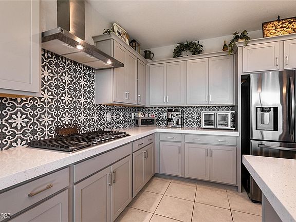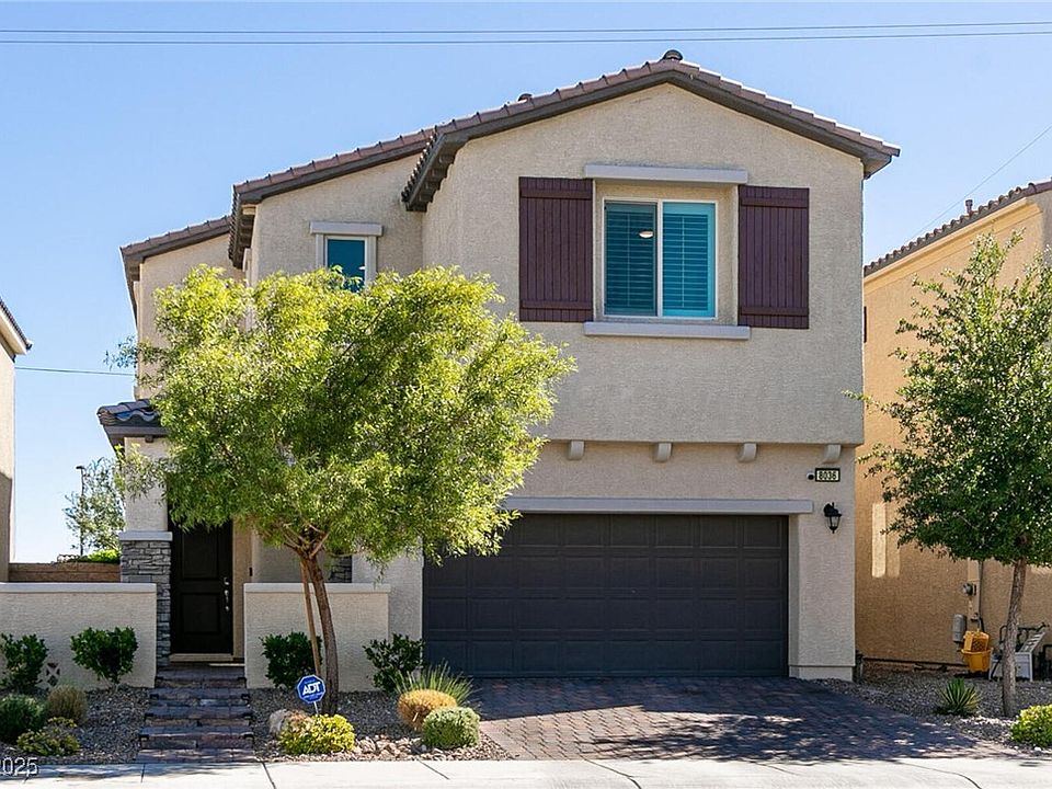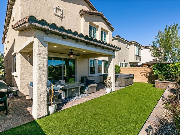 Welcome to this beautifully designed home offering 4 bedrooms, 2.5 baths, and nearly 2,600 square feet of open living space located on a quiet cul-de-sac. The versatile downstairs den has been converted into a 4th bedroom featuring a custom built-in Murphy bed with cabinetry - perfect for guests or a home office. The open floor plan connects the living space, dining, and kitchen, highlighted by a custom tile backsplash and plenty of natural light. Upstairs, enjoy a spacious loft that’s perfect for a second living area or playroom. The primary suite features a show-stopping shower and a relaxing spa feel. Step outside to a private backyard with no rear neighbors and take in the stunning mountain views. Additional highlights include an assumable VA mortgage and access to all the amenities of the Skye Canyon community – pool, gym, community center, events and more!