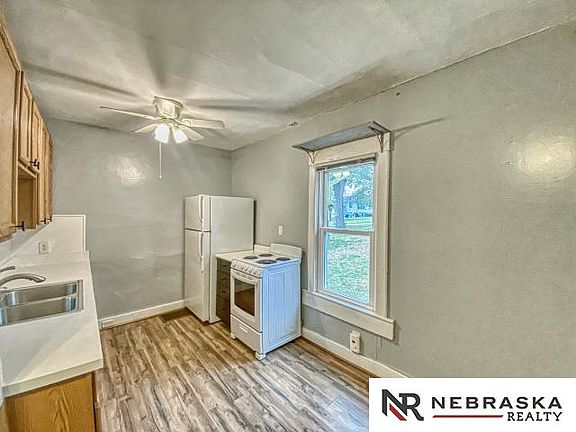 REMARKABLY rejuvenated Ralston charmer! This turn key move-in ready 1.5 story home features: updated eat-in kitchen, NEWLY renovated main floor FULL bath, durable wood laminate floors, main floor laundry, and plush carpeted living room. The 2nd level boasts: 2 bedrooms with hardwood floors, vinyl replacement windows and updated light fixtures/lighting. Exterior amenities include: substantial off-street parking with alley access, sizable metal storage shed, ornate flower beds, BRAND NEW vinyl siding/CLASS 3 architectural-style shingles/gutters/downspouts, and aluminum wrapped vinyl replacement windows. After a busy day, kick back and relax outside on the 12' X 10’ wood deck or the semi-private concrete patio. With the big ticket items being updated/renovated and ALL appliances included, this home is SURE TO IMPRESS under $200,000! Close and easy access to parks, schools, businesses and downtown Ralston! AMA