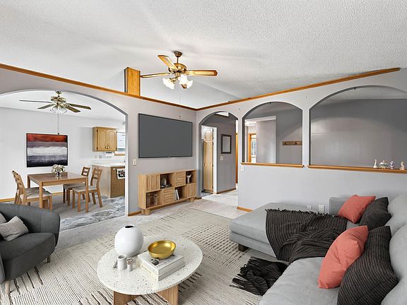 Inside, the home is a blank slate—ready for your personal touches and updates to make it truly your own. Step out onto the large deck, ideal for entertaining or enjoying quiet mornings surrounded by trees. Conveniently located with quick access to I-35, this home offers both serenity and accessibility. A wonderful opportunity to create your dream home in a picturesque setting!