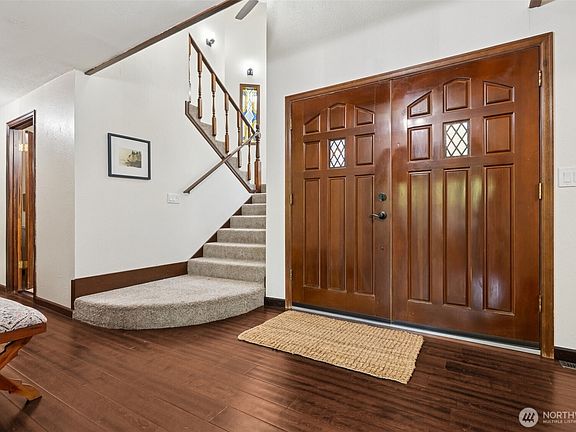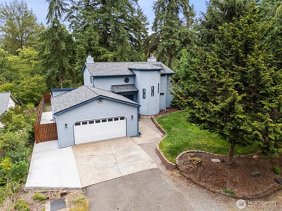 This gorgeous Sunwood Lakes home features so many upgrades throughout. Open the lovely double doors and you will be greeted with gleaming hardwood floors and tons of natural light. Sunken living room features rock wall fireplace and an abundance of windows. Gourmet kitchen has solid surface countertops and stainless steel appliances, plus opens to a wonderful dining space with a wood burning stove. Large primary bedroom on upper level has access to upper deck and it's own corner fireplace. Two other secondary bedrooms upstairs are light and bright. Very private, fully fenced lot, with multiple places to entertain guests. Community features clubhouse, tennis, basketball, baseball, pool and 3 lakes! New roof! Well manicured. Move-in ready!