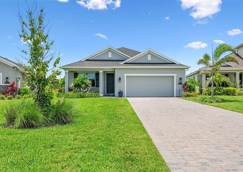 Lawn care is included! Welcome to this absolutely stunning 2022-built home located in the heart of Viera, where luxury, smart technology, and thoughtful upgrades come together in perfect harmony. From the moment you arrive, you'll be impressed by the massive 118.5-foot-long driveway—wide enough to comfortably accommodate up to 10 vehicles—offering both convenience and curb appeal. Step inside to discover sleek tile flooring throughout, soaring taller doors, and premium LG gas appliances in a modern kitchen built for both beauty and performance. Surround sound ceiling speakers elevate the living experience, while custom Roman blackout blinds add both elegance and functionality. Every detail has been carefully considered, from the hurricane impact windows on the front of the home and shutters for the rest, to the tankless hot water heater and energy-efficient LED lighting professionally wired around the exterior. Even the trees are tastefully illuminated, creating a stunning ambiance at night. This Google smart home offers seamless automation, with extensive upgrades made from the start. Enjoy peace of mind and comfort with every modern convenience at your fingertips. One of the standout features of this home is the expansive screened-in back deck, featuring a soaring 10-foot cage and spanning the full width of the house. It's the perfect space to relax or entertain while overlooking lush green space with serene water views in the distance. Lawn care is included in the HOA, so you can spend more time enjoying all the exclusive amenities Addison Village has to offer resort-style pools, clubhouse, fitness center, tennis, pickleball, and more. This home truly checks every box schedule your private showing today and experience the best of Viera living!