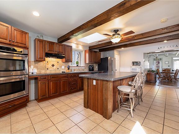 Updated, expanded, and well-maintained. These words are the hallmarks of pride-of-ownership and shine through in this stunning 1850 home. Primary bedroom with newly remodeled bathroom on first floor. 2 additional bedrooms, and a large bonus room (presently used as a bedroom), along with a 2nd full bathroom are found on the second floor. A cozy wood/coal stove in the living room provides heat for the home with electric baseboard heat as an alternative. In the warmer weather, enjoy central air to keep cool. The large open kitchen with center island was added to create an expansive, modern amenity while keeping to the natural exposed wood feel of this lovely home. Dining room, living room, and half bath round out the first floor. Huge 24' x 40' high-ceiling garage (12' high walls) is a mechanic's delight, with ample space and a loft. Even the basement is clean and bright, providing useful storage space to add to the attic space. All this on a half acre in East Penn School District. Quite a find, so close to many convenient amenities.