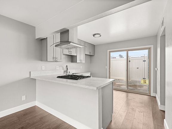 Discover the perfect blend of comfort, privacy, and convenience at 8038 Worthy Drive, a beautifully maintained single-level end unit tucked away at the back of a quiet gated community with no neighbors behind. Zoned as a single-family attached home within a planned unit development, this residence offers the feel of a detached home with the low-maintenance ease of condo living. Inside, enjoy luxury vinyl flooring, plantation shutters, and abundant natural light throughout. The remodeled kitchen features quartz countertops, stainless steel appliances, and clean, modern finishes that flow seamlessly into the open living and dining area. Both bedrooms are appointed with mirrored closet doors, and the spacious bathroom includes double sinks and quartz surfaces for a sleek, updated look. Additional features include in-unit washer/dryer hookups, a generous laundry room with pantry potential, and a private patio with a storage shed, ideal for outdoor entertaining or additional storage. Located just north of the 405 and minutes from Bella Terra's shopping and dining, this home also falls within the highly regarded Huntington Beach School District. A rare opportunity to live a turnkey home in a prime location.