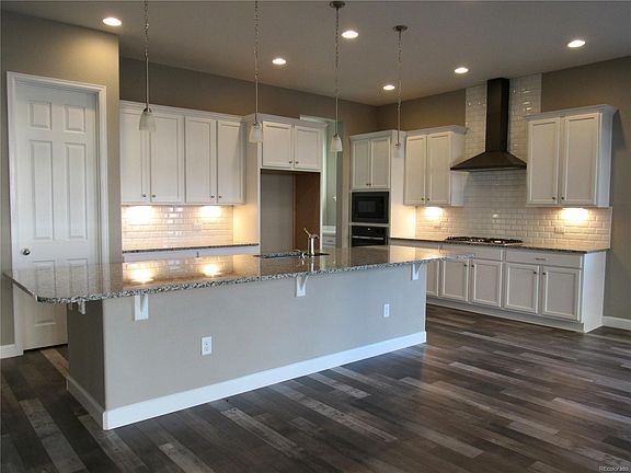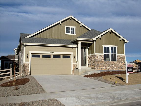 Ranch-style home in Sterling Ranch with a finished basement. Gourmet kitchen includes 42" white cabinets with crown molding, double ovens, and a spacious granite island with ample seating. The elegant Master suite offers a coffered ceiling, walk-in closet, large walk-in shower in the master bath, complete with tile floors and granite counter tops. Two additional bedrooms complete the main floor. The full basement has been finished with a rec room and one generous sized bedroom. 10' ceilings and 8' doors on the main floor. South facing corner lot with front and side yard yard landscaping. Two stone pavers patios, one with a hot tub. The other with a fire pit and built in benches. Plantation shutters on the upper level. Lots of pines for privacy surround the patios.
