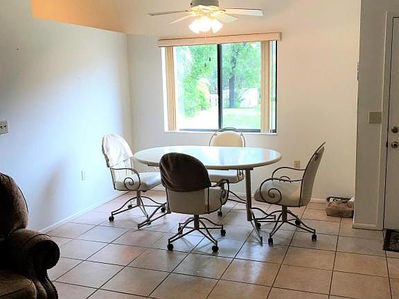 Perfect Florida home. Quiet and private you will love this adorable home backed up to a private wooded lot. Everything you need to enjoy your time in Florida. Vaulted ceilings give you an open concept, with large living room and dining room combo. The home comes with a coat,linen,and pantry closet,along with large closets in the bedrooms. Inside laundry room provides access to the attic for more storage. The lanai has new screening with a private view.. You won't mind cooking in your kitchen with plenty of cabinets and another wonderful view of nature through your kitchen window. Tile and Laminate flooring throughout. The community has many amenities, including an in-ground pool and hot tub, with screened in patio for entertaining. Community includes restaurant and optional golf course.