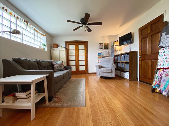 This sunny unit in the treetops features 2 traditional bedrooms plus a "sunroom" with French doors that can be used as a third bedroom, playroom, office, or studio space. The kitchen has been recently remodeled and has a large pantry. There's a back entry room for coats and significant storage. Hardwood floors throughout except newly tiled kitchen and bath. All units in the building have been redone recently. This is a spacious unit on a quiet street near the park.