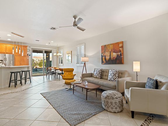 Welcome to your new home at 80394 Avenida Linda Vista in Sun City Shadow Hills. This cozy 2 bedroom, 2 bathroom plus Den home offers 1,463 square feet of comfortable and stylish living space. Nestled on a 5,227-square-foot lot, it's part of a lovely golf course community with many amenities. Step inside this San Ysidro model and discover a bright, open layout perfect for entertaining. The kitchen is a chef's dream, featuring sleek stainless steel appliances, quartz countertops, a double oven, double sinks, a dishwasher, a gas cooktop, and a newer refrigerator. Pendant lighting over the breakfast bar adds a nice touch. Plus, there's a handy laundry room with a sink. The primary bedroom is a true retreat, boasting a spacious private bath, a large walk-in shower, and a custom walk-in closet. Step through the patio door to find an alumawood-covered patio leading to the rear pool area, all surrounded by easy-care pavers. The west side of the home also features pavers for a low-maintenance yard. The garage has an evaporative cooler and storage closets. This well maintained home has so much to offer. Don't wait. Call today to schedule your private showing.