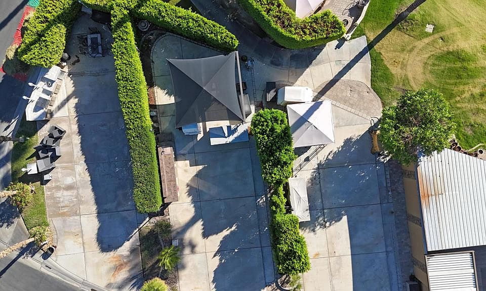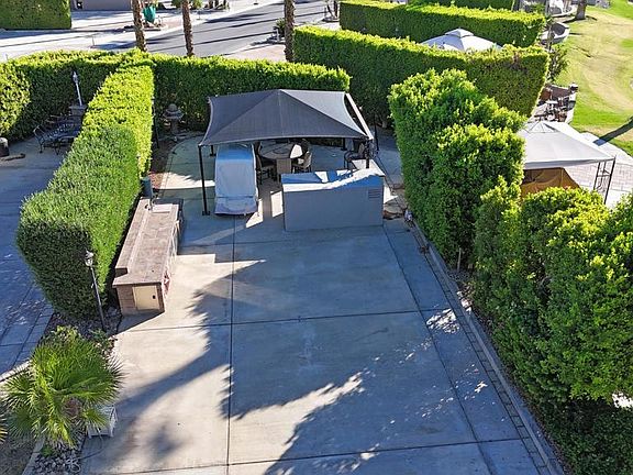 Tucked into a peaceful setting at Outdoor Resort Indio, Lot 158 offers the perfect balance of privacy, comfort, and resort-style living. Mature hedges frame the back and sides of the lot, creating a secluded outdoor retreat, while a small opening at the rear provides direct access to the Phase 2 golf course path and a glimpse of the fairway beyond.The heart of the lot is centered around a large sunshade with a ceiling fan and TV mount, ideal for relaxed afternoons or game-day gatherings. Evenings are enhanced with light posts, a fire table surrounded by six chairs, and the soothing sounds of two water fountains--one at the back corner and another near the front of the lot.A medium-sized outdoor kitchen with sink makes cooking easy, while a BIKE BUNKER storage unit with coded entry provides secure space for bicycles and gear, doubling as an added privacy buffer at the back of the lot. With tasteful landscaping and all the essentials for entertaining, Lot 158 is ready to elevate your Class A motorcoach lifestyle.Outdoor Resort Indio is a Class A only RV resort.
