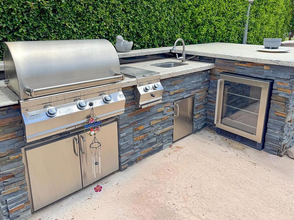 Lot #423 at Outdoor Resort Indio offers one of the most peaceful golf course settings in the resort. Located along the relaxed Phase 6 course with just one tee, this premium lot showcases breathtaking views of fountains, greens, and lakes--perfect for unwinding in style.Designed for a 45-foot Class A motorcoach, this lot includes full hookups and a beautifully finished outdoor kitchen with natural stone accents, granite countertops, gas grill, burners, sink, hot water, garbage disposal, and under-counter fridge--ideal for open-air dining and entertaining.Enjoy added privacy and charm with extra landscaping, a grapefruit tree, and your own grassy pet area (shown in off-season photos). The lot comes furnished with outdoor furniture, so you can settle in and enjoy the active, welcoming lifestyle that makes ORI a top choice for luxury RV living.Outdoor Resort Indio is a class A only motorcoach resort.