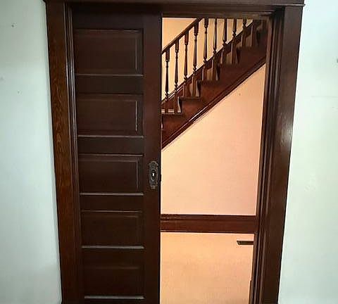 Classic pocket doorThoughtfully preserved detailsSpacious formal dining roomLarge welcoming entrywayOriginal stained glass windows