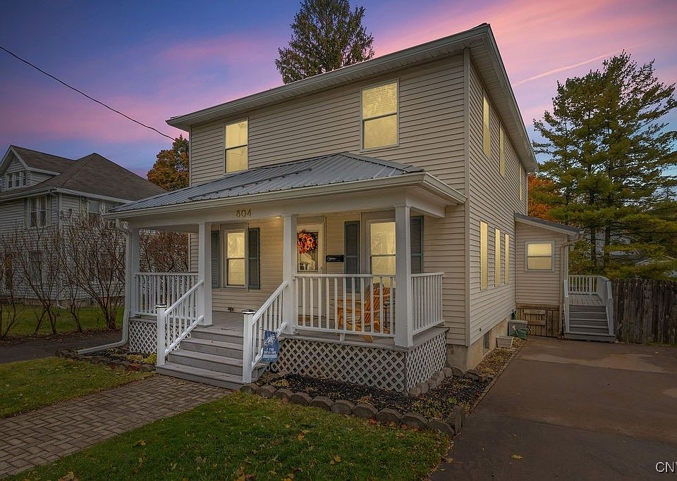 This is the one you've been waiting for! 4 bedrooms, 2.5 baths and located in the village! The covered front porch is a great spot to enjoy those warm summer evenings and provides cover as your guests arrive. You'll enter the home into the casual relaxing area of this wide open floor plan. The newer windows fill this area with natural light. Straight ahead is the kitchen offering a breakfast bar/island, newer stainless steel appliances and loads of granite counter top work space. The beautiful raised panel oak cabinets provide plenty of storage space. There's a large dining area and a sliding door leading the recently refurbished deck. An office/4th bedroom, laundry and powder room are all located on this level. Upstairs you'll find 3 generous bedrooms, and two full baths, one off the owners suite which also features a spacious walk in closet. Plenty of storage space off the hallway. Down to the basement where you'll note a BRAND NEW furnace. This unit was installed last week! There's plenty of room for a workshop or storage. An added benefit is the walk out to the yard. Please note the woodburning furnace. The current owner had it inspected when they purchased the home 3 years ago, got a clean bill of health and have never used it. This unit could be a real money saver for those who prefer to burn wood. The exterior of the home is maintenance free vinyl siding. The deck was just refurbished and will offer years of enjoyment for the new owners. A fully fenced yard offers plenty of room for outdoor activities and the second driveway to the left of the front porch provides plenty of extra parking. Imagine yourselves having the option of walking to the grocery store, restaurants, lakeside park and all the village has to offer. This very attractive and well cared for home will draw plenty of attention so don't hesitate.