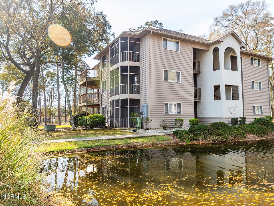 Great opportunity! Move-in ready. This first floor corner-end unit is light and bright with plenty of windows. It has an open floor plan that is great for gatherings, and includes LVP flooring in the main living space and tile in the kitchen and both full baths. The kitchen boasts granite counters and stainless steel appliances with island breakfast bar seating and space for formal dining. There are plenty of closets for storage and a separate laundry room. Relax and enjoy the outdoors with both a screened patio and a covered patio overlooking both pond and Oyster Bay golf course. This 2 bedroom lock-out unit would make a great primary residence, vacation home or investment property. Colony I homeowners enjoy amenities such as a pool and tennis courts. It is just minutes to Sunset Beach, while being close to the shopping, restaurants and attractions of the Myrtle Beach area.