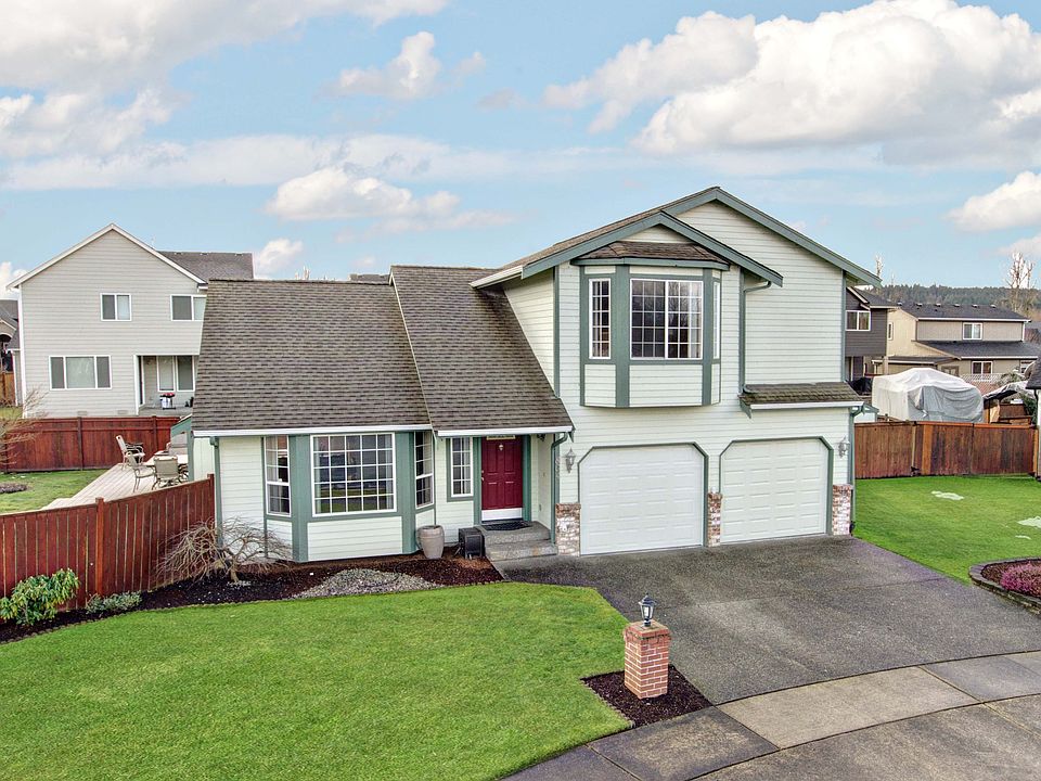 For more information on this property or to schedule a showing contact Dan-O at 253-381-6398 or dano@johnlscott.com. Immaculate condition! Affordable move-in ready 3 bedroom, 2.5 bath home with 1,551 SQ FT of living space! Quiet cul-de-sac location near schools, shopping and highway access. Beautifully landscaped with matured plants. Attached 2-car garage with storage space. Covered front porch. Tile entry way with coat closet and vaulted ceiling. Large living room with bay windows and gas fireplace. Dining room with access to Trex deck. Spacious kitchen with plenty of cabinet space, gas range, insta-hot and breakfast bar. Large family room for additional living space. Powder/laundry room with folding countertop. Large master bedroom suite with bay windows, ceiling fan, huge walk-in closet and private bathroom. Well sized second and third bedrooms with ceiling fans and plenty of closet space. Full bathroom. Huge wraparound Trex deck - perfect for outdoor entertaining! Shy quarter acre lot - fully fenced with large storage shed and separately fenced RV/boat parking area. This home features a new gas hot water heater, new exterior paint, new garage doors, new flooring throughout, newer roof, newer furnace with electric filter, energy efficient heat pump (air conditioning), keyless entry, upgraded to a gas range, upgraded kitchen countertops, all kitchen appliances stay with the home and so much more. Truly a must to see!