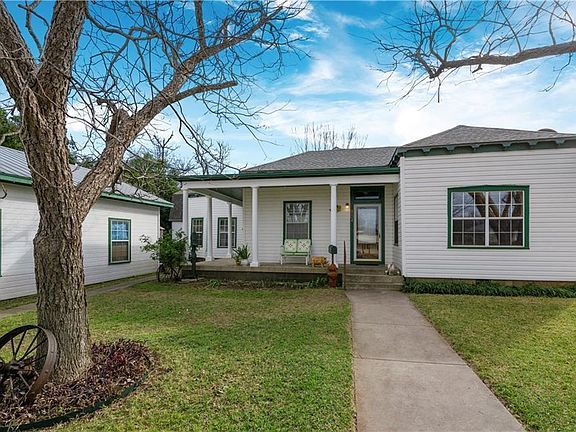 Historic home in Old Town Georgetown! Charming 3-bedroom, 2-bathroom home on large corner lot has original wood flooring in master bedroom, as well as wood ceilings in one guest room, and high ceilings throughout. New carpet and paint! Recently-remodeled kitchen will please any gourmet chef with gas range, soft close drawers and plenty of cabinets. 4-car garage is air-conditioned and has plenty of storage shelving. Towering pecan trees shade the large yard, which also boasts a greenhouse and 660-square-foot shed with loft. Watch the sunset and the poppies blooming from your wraparound front porch. Walk just a few blocks to Georgetown Square, Southwestern University, Blue Hole Park, and San Gabriel River Trail! Home has just been updated with neutral paint and new carpet.