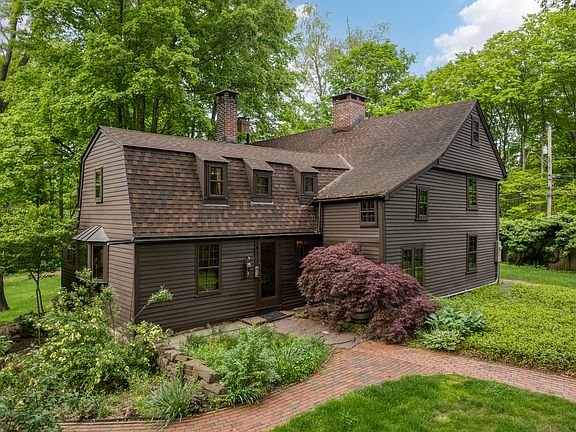 There is room to spare in this wonderful 10 room historic saltbox home that sits on 3.80 magical acres. The lawns, mature flowering bushes, trees, perennials and stone patio are flanked by woods and a seasonal watercourse. There are raised bed gardens and plenty of space for satisfying equestrian passions. This 1720's home has been lovingly restored and maintained. Entering through the front double doors into the classic front foyer, there is a turned stair. To the right off the foyer is an exceptionally large living room with two fireplaces, an adjacent study, hallway access to the stone patio, a full bath and support room that has a sink and laundry. To the left off the foyer is the formal dining room with a fireplace and beehive oven and a wall of built-in bookshelves. Continuing clockwise the original keeping room, now an expanded family room has a fireplace with a wood stove insert and another beehive oven. The south facing alcove is a delightful place to gather to enjoy the warm sunshine that floods in on winter days. At the back of the house is the remodeled kitchen. with a stunning tile floor and Wolf and Sub-Zero appliances. The bay window over the sink is just right for viewing the lush gardens. There is an enormous pantry with extra freezer and endless storage shelves. The back staircase is off the Kitchen. The kitchen has doors to both the yard and walk from the garage and to the stone patio. Such a great arrangement. Upstairs there is an enormous primary bedroom with walk-in closet, and primary full bath. There is access to the back hall. The guest room is a classic with wide board floors and exposed beams. Off the back hall there is a study with vaulted ceiling and exposed beams. The back hall is the way to the third bedroom and the third full bath. The back stairs lead to the bedroom. This home has a large walk-up attic and large walk out basement. This stunning antique home is centrally located in Northford, CT there is easy access to New Haven, NYC, and Boston.