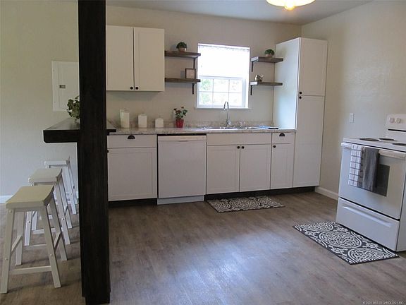 Country feel close to Durant in Lee Heights Addition, on 1 acre lot with beautiful mature trees. This home is totally remodeled from floor to ceiling. Featuring 2 bedrooms, 1 bath with new roof, new windows, New interior/exterior paint and much more. Nothing left to do. Charming in every way. Completely move-in ready. Seller is even throwing in a 1 year home warranty plan.