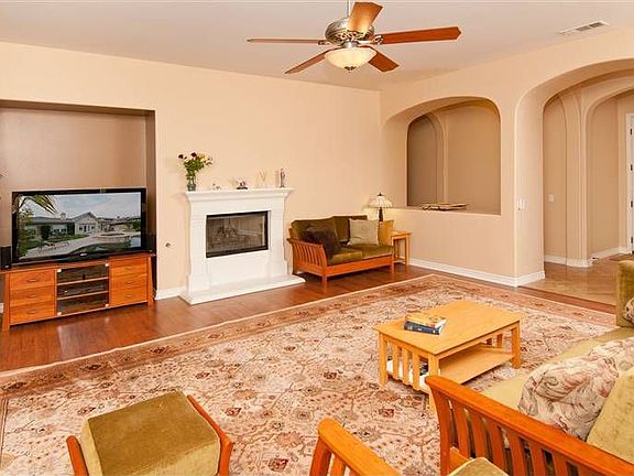 The community of Brentwood offers you this exceptional single story 4BD + 4BTH home on a cul-de-sac location with expansive mountain views. This home features a gourmet eat-in kitchen with GE Monogram stainless appliances, built-in fridge, dual convection ovens, 4 burner stove with griddle, custom backsplash, butler's pantry and a center island with bar seating. The spacious family room has a fireplace, engineered wood flooring and beautiful mountain views. Private master suite with built-in entertainment center, views, bath with granite counters, soaking tub, built-ins in closet, and Kohler digital spa shower system. Secondary bedrooms with J/J bath. Office nook with built-ins. Additional upgrades include travertine flooring, plantation shutters, dual zoned AC and attic storage. Private back yard with salt water Pebble Tec pool and spa, amazing views of mountains and open space.