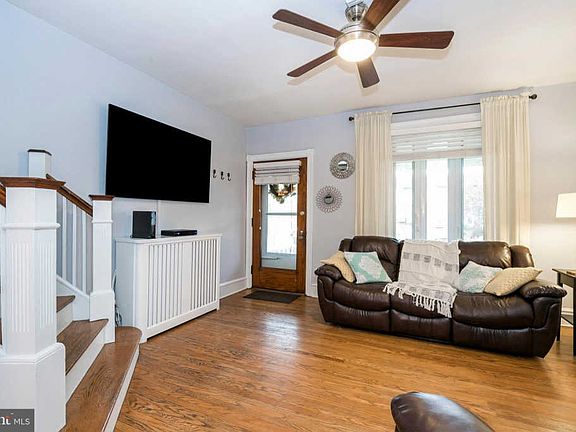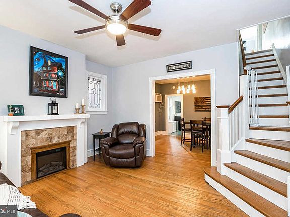 This updated 3BR, 2BA twin is steps away from all the Conshohocken Boro has to offer! From the covered front porch to the inviting interior spaces, this one is all wrapped up and ready to go! We love the architectural details - leaded glass windows, a bay window, detailed woodwork and a handsome oak staircase. The first floor features beautiful hardwood floors in the formal Living Room and Dining Room. The updated kitchen is outfitted with white cabinetry, stainless appliances, gas stove, and ceramic tiled floor. There is a convenient pass through to the sun room which has a door to the expanded deck. This home backs to open space with views of Sutcliffe Park - a rare find in Conshohocken! A full updated bath rounds out this floor. Upstairs are three bright and airy bedrooms with lots of closet space and an updated full bath. Bonus: the basement is finished! This large entertainment space has laminate wood floors, recessed lighting and storage area. Fresh, updated and in the right location! This one is Just Right!