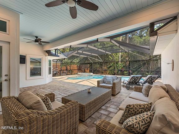Stunning POOL home in Odom's Mill of Ponte Vedra Beach with 5 bedrooms, 3 bathrooms & large open concept floorplan. Upon entering,you'll be greeted by modern oak flooring & a wine connoisseur's dream—a dedicated room designed to display & taste your private collection of wines & spirits.On the right,you'll find 3 spacious 2ndary bedrooms with a beautifully updated Jack and Jill bathroom.Towards the back,a large MIL suite offers privacy with a generous walk-in closet & a luxurious updated bathroom featuring a frameless shower.The coastal kitchen & family room seamlessly open to an outdoor oasis, transformed in 2013 into an entertainer's dream. The space includes a sprawling covered screened paver patio, a sparkling pool, & a relaxing hot tub.A separate fenced astro turf area is perfect for games like corn hole or a fun fetch session with your dog.The large master suite is ready for your personal touches. New windows and elegant plantation shutters in 2020.The property is located on Mil Stream Rd., providing private sidewalk access to local A-rated schools. HVAC 2022, Front Door & Windows 2020, Roof 2014,Pool, Pavers, Screen, & Cage 2013, Water Heater 2024, Water softener 2022, Landscape and Garage 2022.