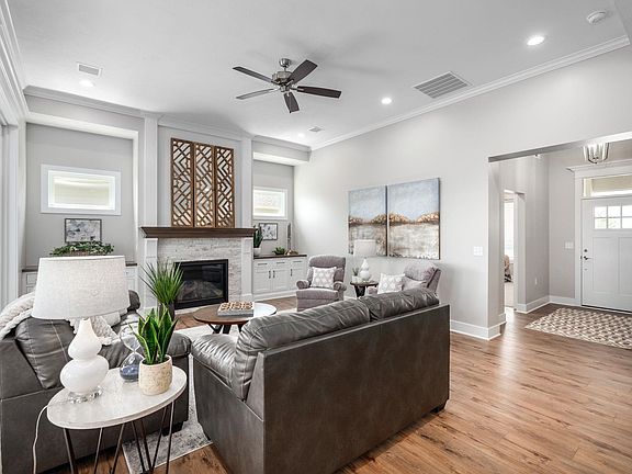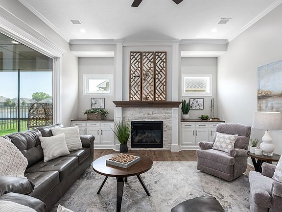 Welcome to this stunning lakefront home in the desirable Castlegate neighborhood, crafted by the esteemed H&H Homebuilders. This beautifully appointed home features 3 spacious bedrooms and 3 bathrooms, including a master suite with a unique concrete storm room, split double vanities, and a luxurious fully tiled walk in shower with bench seat. In addition to the master suite, one of the other bedrooms features its own attached bathroom with a walk-in shower. Enjoy the serene views and outdoor living on the covered and screened patio. The home also includes a generous 3-car garage, window treatments throughout and a 1 year builder warranty. Castlegate community offers exceptional amenities, including a clubhouse, an in-ground swimming pool, and a stocked fishing lake. Call or come see today! Castlegate is open 1-5 pm, Tuesday through Sunday.