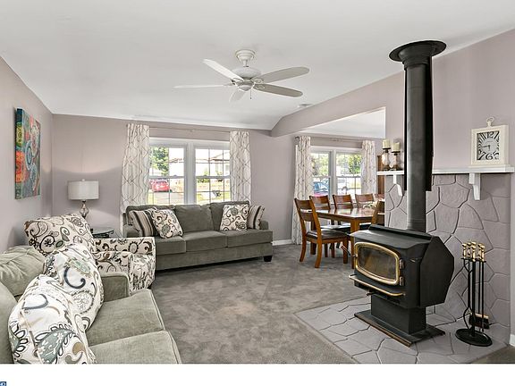 Single level living makes life a breeze with no stairs! This impeccably maintained 4 bedroom, 2 bath home has numerous upgrades throughout. As you approach this property, you will notice the pride of ownership. You are greeted by a charming front porch. As you enter this home, you will notice the tile floors in the foyer, freshly painted walls and the open floor plan. The spacious living room is adjacent to the dining room, leading to the eat-in kitchen. Down the hallway is 3 bedrooms and a full bath. Off the kitchen is the over-sized sun room. Out back, the private yard, offers a large paver patio, in-ground swimming pool, attached sun setter and 2 storage sheds. This is the perfect space to host any party! With the two wood stoves inside and gas heat, you will be sure to be kept warm this winter. 1 year 2-10 Home Warranty Included! Enjoy all this and more in Maple Shade NJ. Hurry, this opportunity will not last!