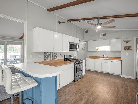 Inside, you’ll find 3 spacious bedrooms, 2 bathrooms, and a versatile den—perfect for a home office or hobby room. The open living room overlooks the water and flows seamlessly into the kitchen and dining spaces. The kitchen features stainless steel appliances, an eat-in bar, and an informal dining area ideal for gatherings.