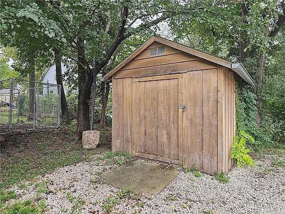 Your next project is ready for some love! Loads of potential here! Office could be a 5th bedroom on the main floor. Laundry room has a vintage sink. Room to add cabinets in the kitchen if needed. Pantry is under the stairway. Lots of storage in the upstairs bathroom. Detached 288 square foot 1-car garage has a concrete floor. 108 square foot shed. Enjoy sipping on your favorite beverage on your covered patio on the back of the home overlooking a treed yard. Parking areas in the front and back of the home.
