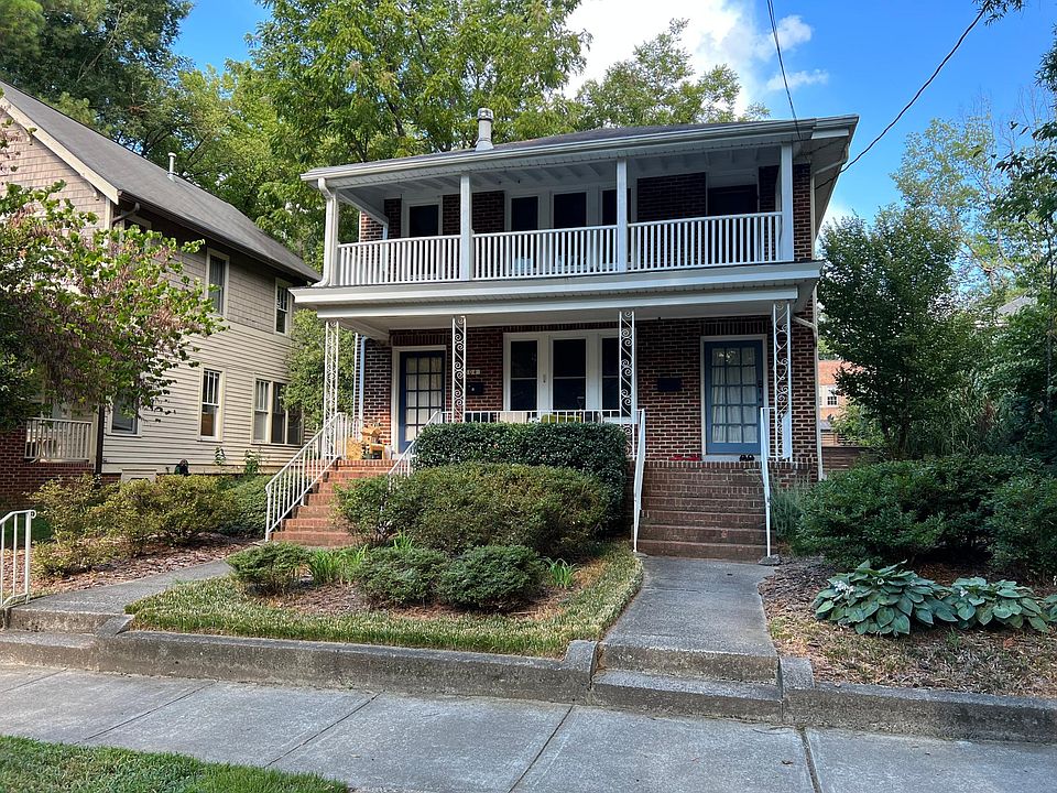 Historic apartment on the 2nd floor of a duplex next to Duke's East Campus. The unit is on a quiet residential street within walking distance of 9th Street and downtown. The apartment includes a large 2nd story covered porch, 2 bedrooms, dining room and 1 bathroom. Renter pays utilities. No smoking on the property. Street parking is available in front of the duplex. Owner manages the landscaping.
