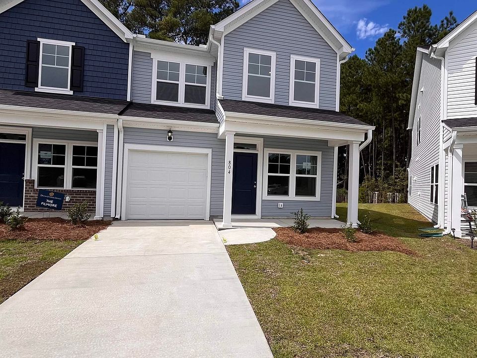 New Open Floorplan at Calabash Palms. The Filmore model is a spacious townhome that has 3 Bedrooms with 3 full baths. Owners suite is on first level with walk in closet, double vanities and a shower. A powder room and laundry room are also on the first level. The living room is open to the loft upstairs. The two secondary bedrooms upstairs are both 12x14 with their own full bathroom. Beautiful Stone Grey Kitchen Cabinets with Artic White Quartz countertops. 2 mini pending lighting above the kitchen island, brushed nickel hardware and LVP floors. Quiet community that is Pet friendly. Community incudes a dog park. Ask the onsite agent for promotions that are available, ask agent when you come to visit us. Photos coming soon! Home estimation completion August 2025