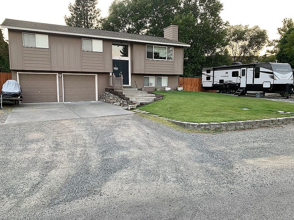 Omak - Immaculate and bright home features 4 bedrooms and 2+ bathrooms. Located on a quiet street in a lovely neighborhood. Key home updates include new RV parking, underground sprinklers, painting, energy efficient windows with plantation shutters, carpeting, and sparkling stainless appliances. Located on a large city lot, with an expansive, private fenced backyard. Lush, mature landscaping with a shed and large concrete patio area—abundant space for garden, fire pit, entertaining and more! Bright kitchen with generous cupboard space and large open living room with beautiful brick fireplace and lots of natural light. Master bedroom with en-suite bath. Two additional bedrooms and one bathroom on upper level. Downstairs includes private bedroom, plus family/bonus room with built-ins, dedicated laundry room complete with a 1/2 bath and an attached 2 car garage Your perfect turn-key home! Willing to work with realtors! 509-322-7866 Text msg okay!