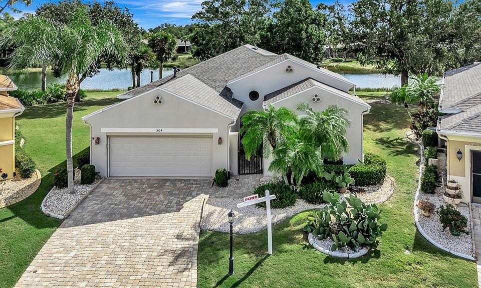 BEAUTIFUL WATER VIEWS – MOVE-IN READY HOME IN RENAISSANCE! Enjoy stunning waterfront views from this beautiful home with pavered driveway and entry, 2-bedroom, 2-bath home with den, located on a quiet cul-de-sac in the highly sought-after 55+ Renaissance community of Sun City Center. Gated front entry way leads to screened and covered front door. NEW ROOF (June 2025) and complete fresh exterior paint (May 2025) – worry-free living! Spacious open floor plan filled with natural light, high ceilings, crown molding, and neutral tones throughout. Modern kitchen with granite countertops, stainless appliances, gas stove,pantry, and breakfast nook overlooking the water. Relax in the inviting living and dining areas featuring tray ceilings and direct access to the lanai. Primary suite offers private lanai access, water views, double closets, and a spa-like bath with dual sinks and walk-in shower.. Expansive screened lanai spanning the entire back of the home plus an additional open-air patio for grilling or sunbathing. 2-car garage with retractable screen, hurricane window coverings, and plantation shutters for added comfort and style. 1-year American Home Shield warranty included! Experience serene Florida living surrounded by nature—perfect for birdwatching enthusiasts with sandhill cranes, herons, and spoonbills visiting daily.Mature landscaping and curbing add to the many desireable home features. As a Renaissance resident, enjoy access to the exclusive members-only clubhouse with restaurant, bar, resort-style pool, fitness center, and more. Homeowners also have full use of Sun City Center amenities, including indoor/outdoor pools, pickleball courts, golf, and countless clubs and events. Located near I-75, this home offers easy access to Tampa, Sarasota beaches, world-class dining, and shopping—all within a golf cart-friendly community! Don’t miss this opportunity to live your best Florida lifestyle with water views, upgrades, and community luxury—schedule your tour today!