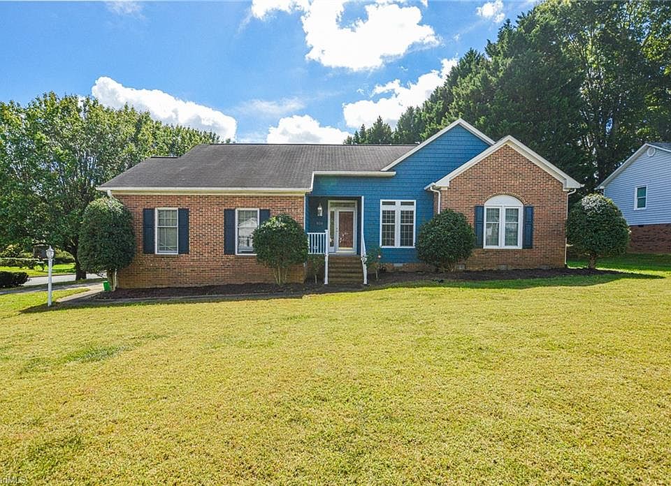 PRICE REDUCTION! Wonderful 3 bedroom, 2 bath one level home offers over 1,500 square feet of living space nicely situated on a corner lot in this sought after community. Features include a spacious combined living and dining area with fireplace, built-in shelving and skylights for added natural lighting. Large kitchen with lots of counter and cabinet space and sunny breakfast area. Primary en-suite offers huge walk in closet with built-in, custom shelving, updated bath with dual vanity, soaking tub and separate shower. Recent improvements include fresh paint, newer lighting and plumbing fixutures in kitchen and baths, new kitchen counters, kitchen sink, resurfaced tubs, bathroom sinks, shower, vanities. New water heater. Large deck overlooks a level back yard with lots of trees for shade and privacy. Close to Elon College, grocery, shopping and dining. Refrig, washer/dryer stay. No HOA dues. See Agent Only for info on reduced interest rate and down payment programs.