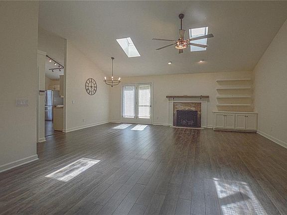 Wonderful opportunity to make this fabulous home yours! This 3 bedroom, 2 bath one level home offers over 1,500 square feet of living space nicely situated on a corner lot in this sought after community. Features include a spacious combined living and dining area with fireplace, built-in shelving and skylights for added natural lighting. Large kitchen with lots of counter and cabinet space and sunny breakfast area. Primary en-suite offers huge walk in closet with built-in shelving, updated bath with dual vanity, soaking tub and separate shower. Freshly painted with newer lighting and plumbing fixutures in kitchen and baths. Large deck overlooks a level back yard with lots of trees for shade and privacy. Close to Elon College, grocery, shopping and dining. Refrigerator, washer and dryer remain. No HOA fees.