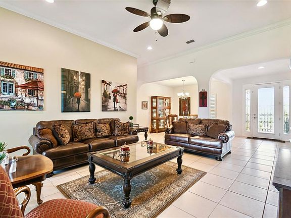 NEW PRICE!! SELLER MOTIVATED........NEW HVAC INSTALLED SEPTEMEBR 2025. Welcome to this stunning Pesaro model in the exclusive Portofino Estates of Solivita. Situated on an oversized lot with a THREE-CAR garage, this home offers exceptional privacy and plenty of room for a future pool. The expansive outdoor space is complemented by a convenient lanai half bath, perfect for entertaining. Enter through the gated front porch and step into a thoughtfully designed floor plan featuring 3 bedrooms, 3 full baths, plus a DEN, along with the OUTDOOR HALF BATH. TALL CEILINGS and ceramic tile flooring throughout the main living areas create a bright, open, and welcoming atmosphere.The owner’s suite is a true retreat, showcasing LVP FLOORS, plantation shutters, two custom walk-in closets, and private French door access to the lanai. The ensuite bath boasts DUAL GRANITE vanities, a walk-in shower with dual bench seating, a private commode, and a large linen closet. The gourmet kitchen is designed for both style and function with 42" solid wood cabinets, granite countertops, STAINLESS STEELL APPLIANCES, recessed lighting, and a center island with seating. A closet pantry and adjacent breakfast nook flow seamlessly into the family room—ideal for everyday living or entertaining. The split bedroom layout ensures privacy for guests, with two additional bedrooms featuring plush carpet and plantation shutters. A dry bar with lockable cabinets, a large laundry room with washer, dryer, stainless steel sink, and extensive storage add to the home’s functionality. Upgrades include: custom blinds, PLANTATION SHUTTERS, upgraded lighting & fans, 8' doors and sliders, higher baseboards, and a leaded glass entry door with sidelights. The 3-car garage offers a utility sink, WHOLE-HOUSE WATER SOFTENER, and pull-down attic stairs. EXTERIOR PAINTED IN 2019. Solivita's amenities include: * - a manicured SOFTBALL diamond & field - 36 holes of CHAMPIONSHIP GOLF that can be played by joining the Stonegate Golf Club or paying as you go - 2 STATE of the Art AMENITY centers with updated exercise equipment, yoga studio & meeting rooms - 3 restaurants - 14 HEATED POOLS - 17 PICKLEBALL courts - 9 TENNIS courts - 4 BOCCE BALL courts - 4 SHUFFLEBOARD courts - 3 HORSESHOE. Click on VIRTUAL TOUR link 1 to see MATTERPORT 3D VIDEO and virtually walk through this home. Solivita is an AWARD winning 55 plus community boasting over 4200 acres of natural beauty -come and enjoy retirement living at its finest. Call and schedule your private viewing and make it yours today!