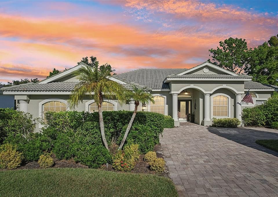 Located in one of Osprey’s most desirable neighborhoods, this well-maintained 3 bedroom, 2 bath home with a den offers an unbeatable location just a short walk to Pine View School and minutes to Casey Key and Siesta Key. Enjoy peaceful pond and greenbelt views from the screened lanai, which features a covered sitting area, pool, and a separate patio with hot tub. The open, split floor plan includes a spacious great room with sliding glass doors that extend the living space outdoors. Inside, you’ll find crown molding, trey ceilings, tile and wood flooring, and thoughtful designer details throughout. The primary suite offers its own slider to the lanai, water views, and a comfortable, well-appointed layout. Additional highlights include a den/flex room, paver driveway, and mature landscaping. A wonderful opportunity to live in Rivendell with its tree-lined streets, walking paths, and convenient access to beaches, shopping, and dining.