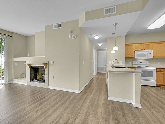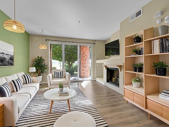 This inviting condo offers comfortable living with modern conveniences and a warm, welcoming feel. Inside, you'll find a bright living room and a spacious primary bedroom, both featuring hardwood flooring that adds a touch of style throughout. The kitchen comes fully equipped with a refrigerator, electric stove, oven, microwave, dishwasher, and disposal, making meal prep and clean-up easy. Stay comfortable year-round with air conditioning, gas heat, a ceiling fan, and the convenience of an in-unit washer and dryer. Enjoy some fresh air on your patio or porch, and take advantage of the extra storage space and 1-car parking space. The home also includes access to a community pool for relaxing summer days. Please note that while the fireplace adds charm, it is not currently usable.