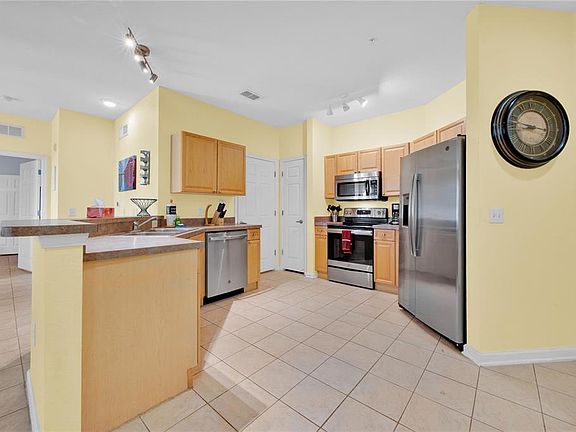 Welcome to Terrace Ridge Condominiums, a beautifully maintained gated community located near Old Lake Wilson Road and Osceola Polk Line Road in Davenport, Polk County, Florida. This spacious ground-floor 2-bedroom, 2-bathroom condo features a desirable split open floor plan with abundant natural light and contemporary finishes throughout. The large kitchen offers stainless steel appliances, generous counter space, and comes fully equipped with cookware and utensils for move-in convenience. The primary suite includes a walk-in closet, dual vanities, a separate walk-in shower, and a jacuzzi tub. The second bedroom and full bath provide additional comfort and privacy. Other features include a laundry room with washer and dryer, two large storage closets, and a welcoming living area perfect for relaxing or entertaining. Community amenities include a heated pool and hot tub, clubhouse, fitness center, and recreational facilities. The HOA fee covers exterior maintenance, water, cable, and internet, offering a low-maintenance lifestyle in a well-kept, resort-style setting. This property offers a wonderful combination of comfort, convenience, and quality within a secure and beautifully maintained community.