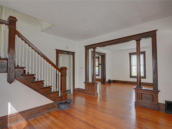 This lovely home has so much to offer! The main floor has the original trim, wide baseboards and hardwood floors. The home is in move in condition. It is done in neutral colors and has replacement windows. It also offers a great covered front porch, 4 spacious bedrooms, 2 bathrooms and a nice sized corner lot with plenty of room to build a garage later. This affordable, spacious home will probably give you a payment lower than what you are paying in rent.