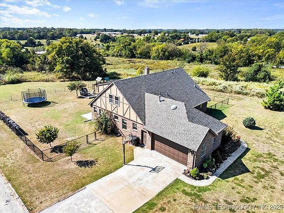 This stunning two-story home, set on a half-acre lot, combines the personal extras into modern construction. Featuring five bedrooms, plus a flexible space that could serve as a sixth bedroom, the home offers more than enough room for living and entertaining. The open-concept kitchen, dining, and living areas create a welcoming atmosphere, while the main level includes a primary suite with a private bathroom and walk-in closet, a private office with built-in shelving, and two additional bedrooms. Upstairs, a spacious area includes two more bedrooms, a full bath, and another flex room which could be used as a theatre room. The entire house is wired with surround sound which adds to the movie/music experience. Outdoors, a covered patio and well-designed kitchen overlook a tranquil landscape with endless possibilities. This home seamlessly blends character, modern amenities, and serene living.