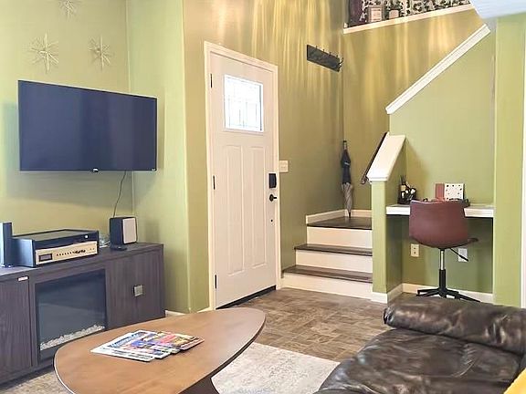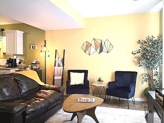 Welcome home to this beautifully remodeled 2-bedroom, 1.5-bath gem that perfectly blends charm and modern updates. As you enter, you’ll immediately appreciate the open-concept living, kitchen, and dining area — ideal for entertaining and everyday living. The kitchen has been refreshed with newly painted cabinets, updated lighting, and stylish hardware, creating a warm and inviting space. The main level also features a convenient half bath with a combined laundry area. Durable laminate flooring flows throughout the main floor, tying the space together with a clean, modern look. Upstairs, you’ll find two spacious bedrooms with matching laminate flooring and a beautifully updated full bathroom. Step outside through the back door to enjoy your private deck — perfect for grilling, relaxing, or hosting friends. The yard includes a cozy fire pit area, ready for your outdoor enjoyment year-round. This home offers comfort, style, and functionality — ready for you to move right in!