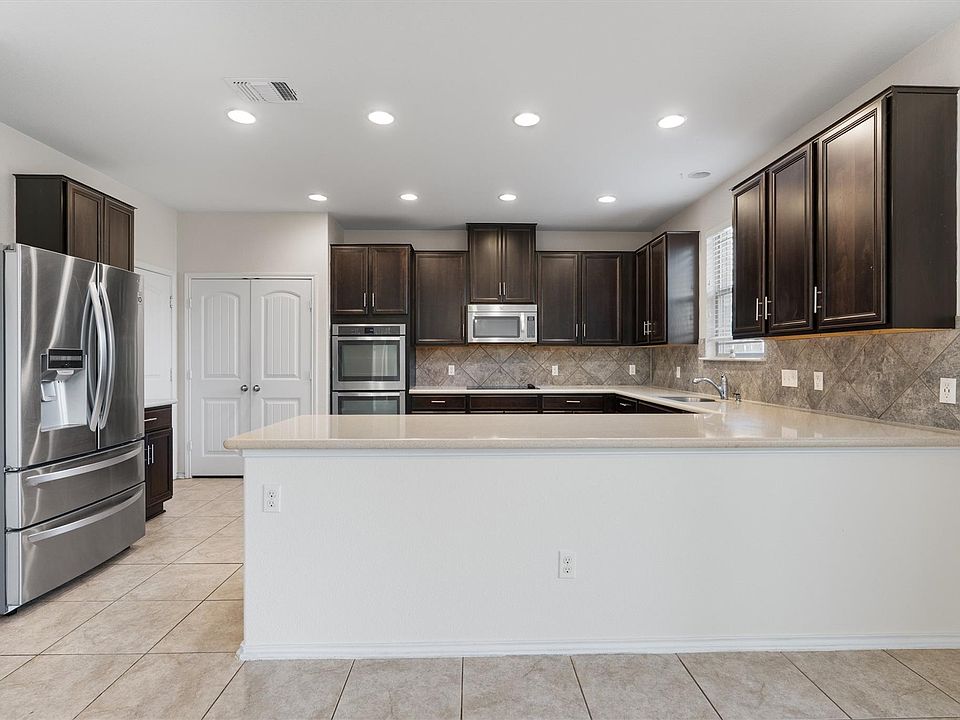 Tucked into the desirable Crystal Crossing community, this lovingly maintained two-story home offers comfort, space, and convenience in a peaceful setting. Charming curb appeal welcomes you with a covered front porch and manicured landscaping. Step inside to a bright and open interior featuring an abundance of natural light and ceramic tile flooring throughout the main level. The spacious living room flows seamlessly into a large kitchen equipped with ample cabinetry, generous counter space, sleek quartz countertops, and stainless-steel appliances—including a built-in double oven, electric cooktop, and refrigerator (to convey)—making it ideal for everyday living and entertaining. Upstairs includes new carpet installed 7/2025, and the generous primary suite offers a true retreat with a walk-in closet and a well-appointed en-suite bath featuring a dual vanity and a walk-in shower. A versatile game room and two additional guest bedrooms provide plenty of space for work, play, or relaxation. The covered back patio overlooks a huge, tree-shaded backyard that feels private and serene. In addition to the covered area, a spacious open-air slab offers the perfect spot for patio furniture, a fire pit, or casual entertaining around the private hot tub—creating a flexible outdoor living space you can enjoy year-round. Crystal Crossing residents enjoy access to a community park, playground, and walking trails. Located within highly rated Leander ISD and just minutes from shopping, dining, and major roadways, this home offers the perfect combination of neighborhood charm and everyday convenience. Schedule a showing today!