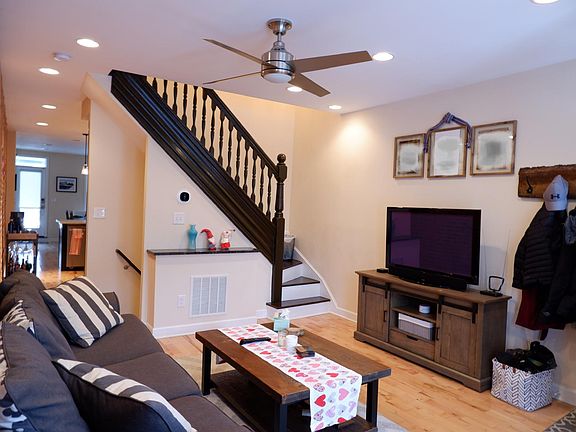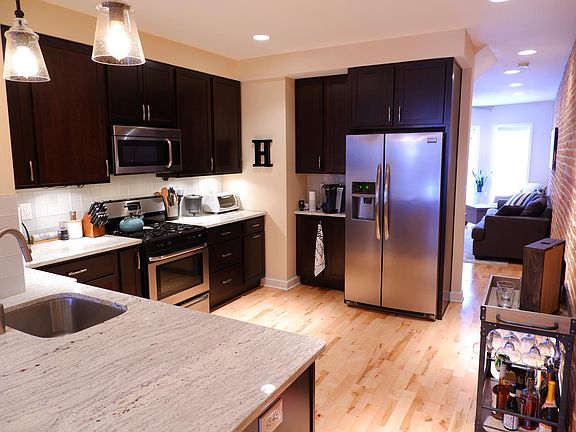 2 bedroom, 3 full bath townhouse with open floor plan. The house was fully renovated in 2015 with all new flooring, carpet, appliances, bathrooms, and recessed lighting throughout. The house features hardwood floors throughout the first level with carpeted bedrooms and basement. The basement includes a full bathroom, laundry, and plenty of room for storage. The kitchen includes granite countertops, stainless steel appliances, a gas range, and plenty of counter space for cooking. This house features an easily accessible one-car parking pad to the rear. The property is located one block south of the Avenue in Hampden, walking distance to many bars and restaurants. Tenant is responsible for water, gas and electric. One month's security deposit due at signing. No smoking in the house permitted. No pets. Available February 1st.