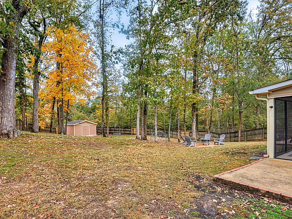 Out back, enjoy a screened porch, patio, firepit area, and fenced wooded yard with playground equipment and a storage shed—perfect for entertaining or relaxing in privacy.