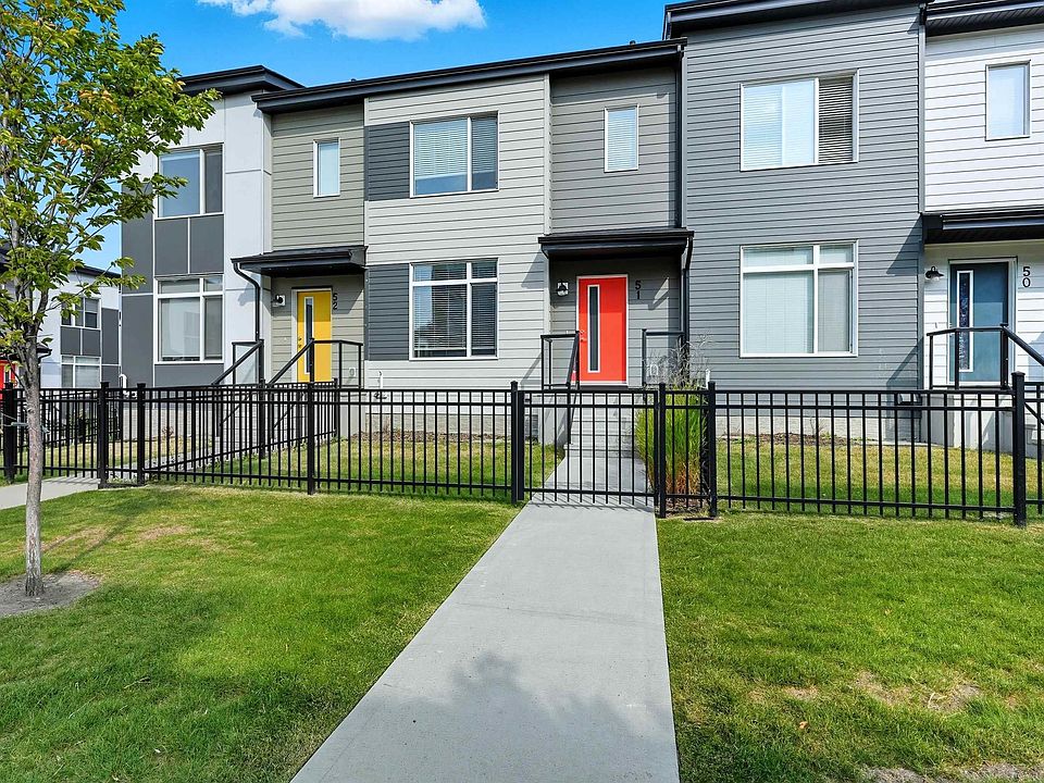 Bright, modern & spacious 3 bed/2.5 bath townhouse w/ double attached garage in the desirable Walker neighborhood. 1545 sf total living space. Perfect for first time home owners or investors! Main floor features 9' ceilings, vinyl plank floors & a roomy living room filled with natural light from the large South facing window. Kitchen offers a functional layout, stainless steel appliances, quartz countertops, tons of counter space, walk-in pantry, eating bar, & built in desk. Upper level also has 9' ceilings & large primary bedrm w/ 4pc ensuite & walk in closet. Two other well sized bedrms, 4 pc main bath & laundry complete this level. Lower level flex room is perfect for an office, play rm, exercise area, or extra storage space! Energy-efficient mechanical including HRV & tankless hot water for a lower utility bill. This well maintained complex offers visitor parking and nearby walking trails & lake. Conveniently close to shopping, schools & public transit. Quick access to commuter routes incl Henday